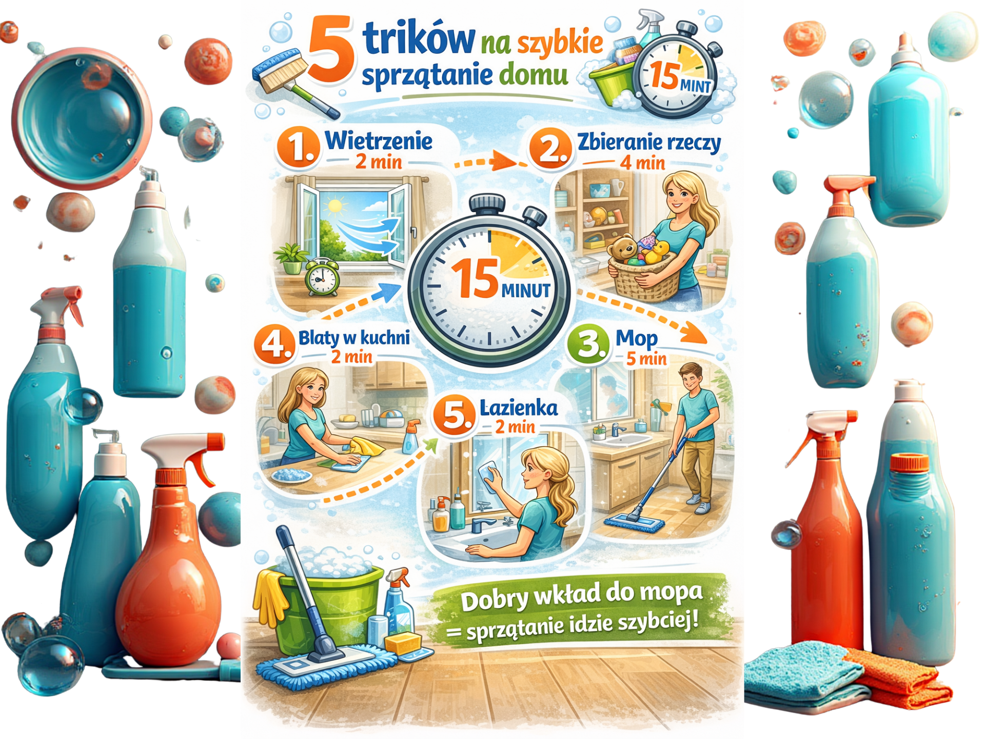 3️⃣ Mop lub szybkie przetarcie podłóg – 5 min