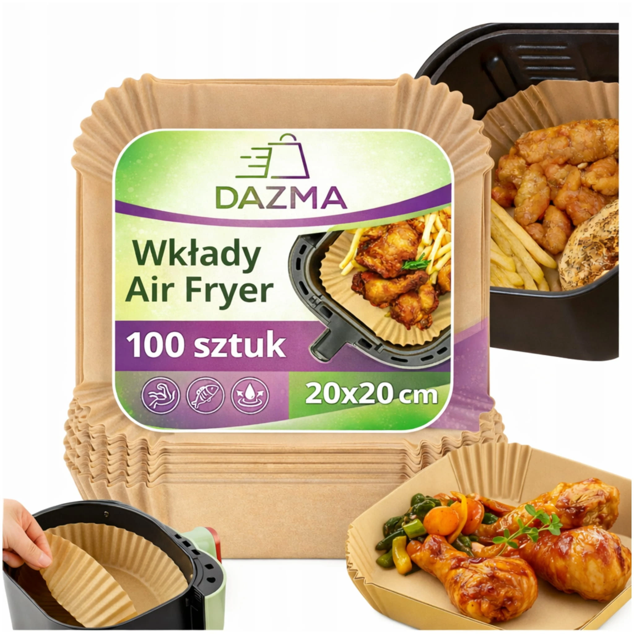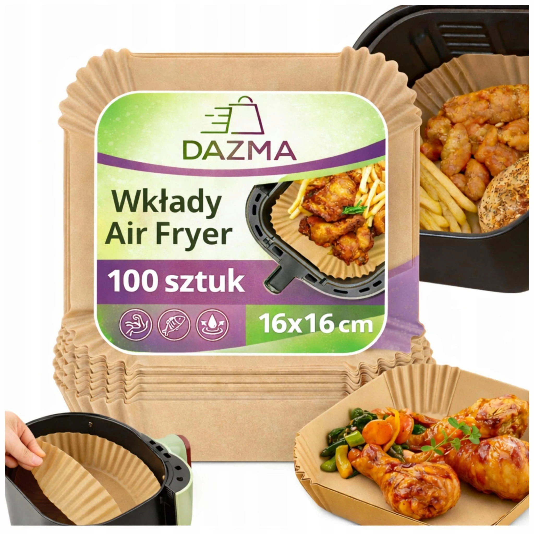 100x WKŁADY AIR FRYER PAPIER TACKI PAPIEROWE DO FRYTKOWNICY BEZTŁUSZCZOWEJ