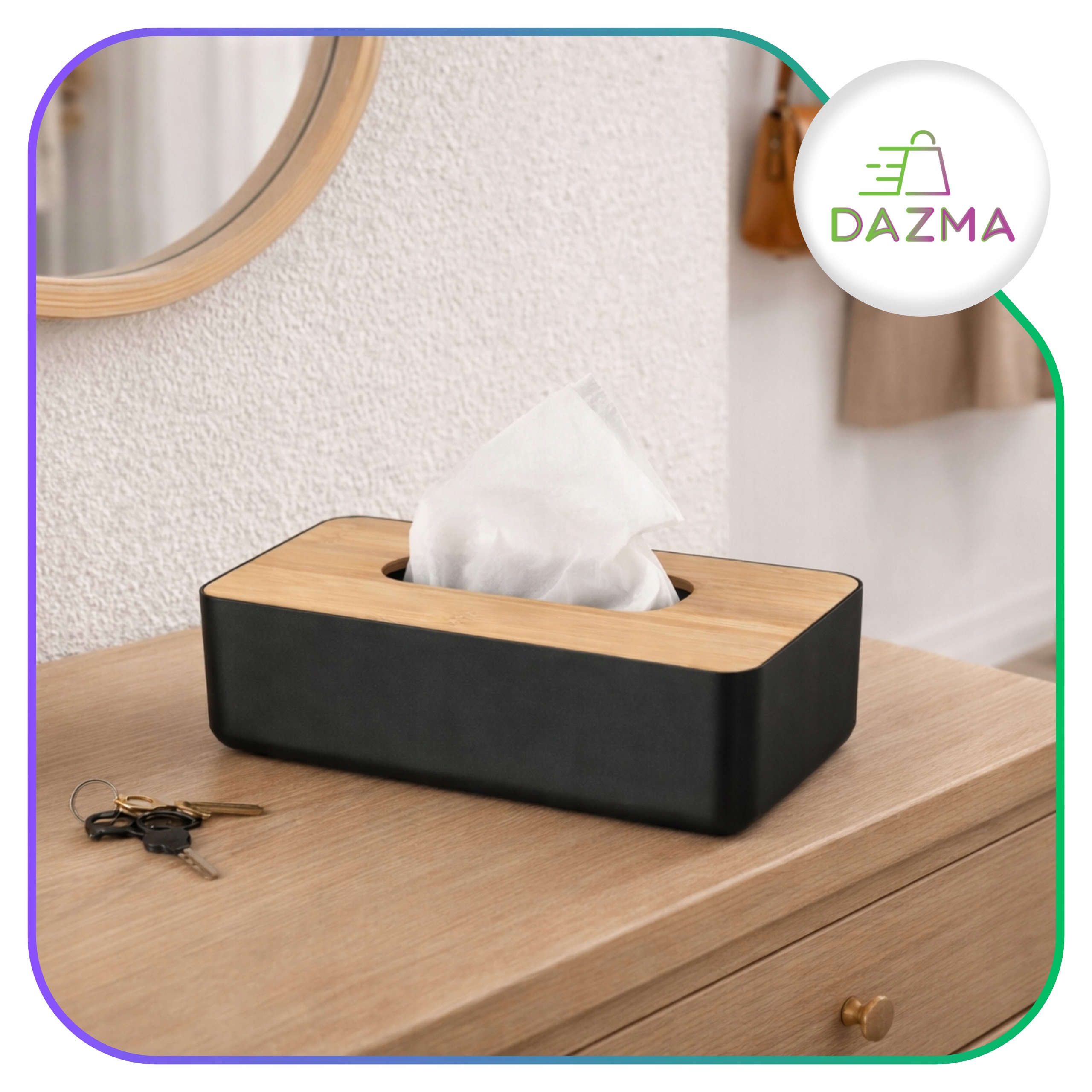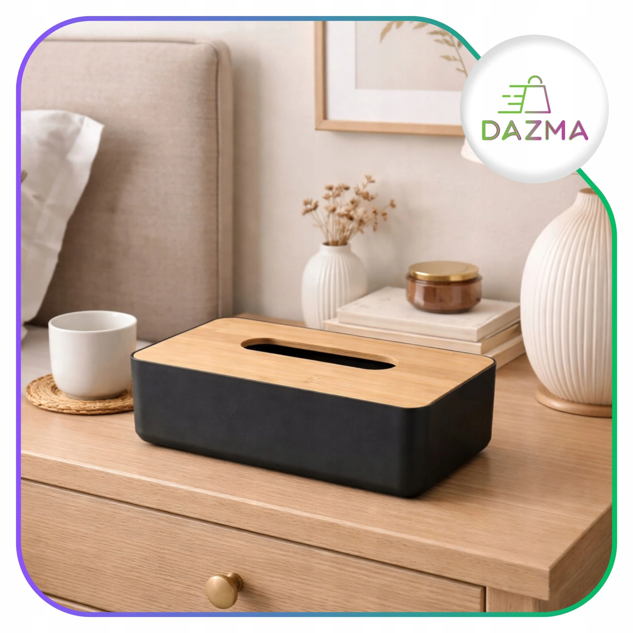 ❇️ Pudełko na chusteczki z pokrywką w imitacji bambusa – Styl i funkcjonalność