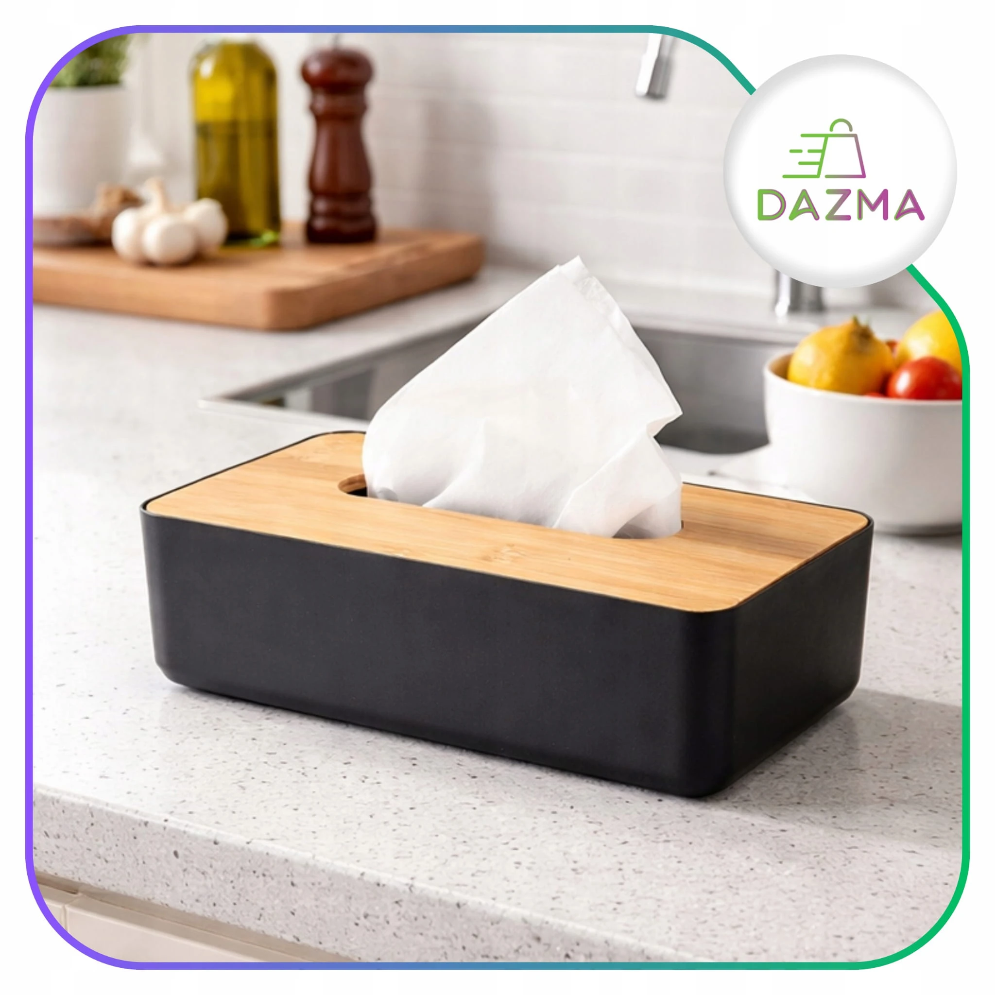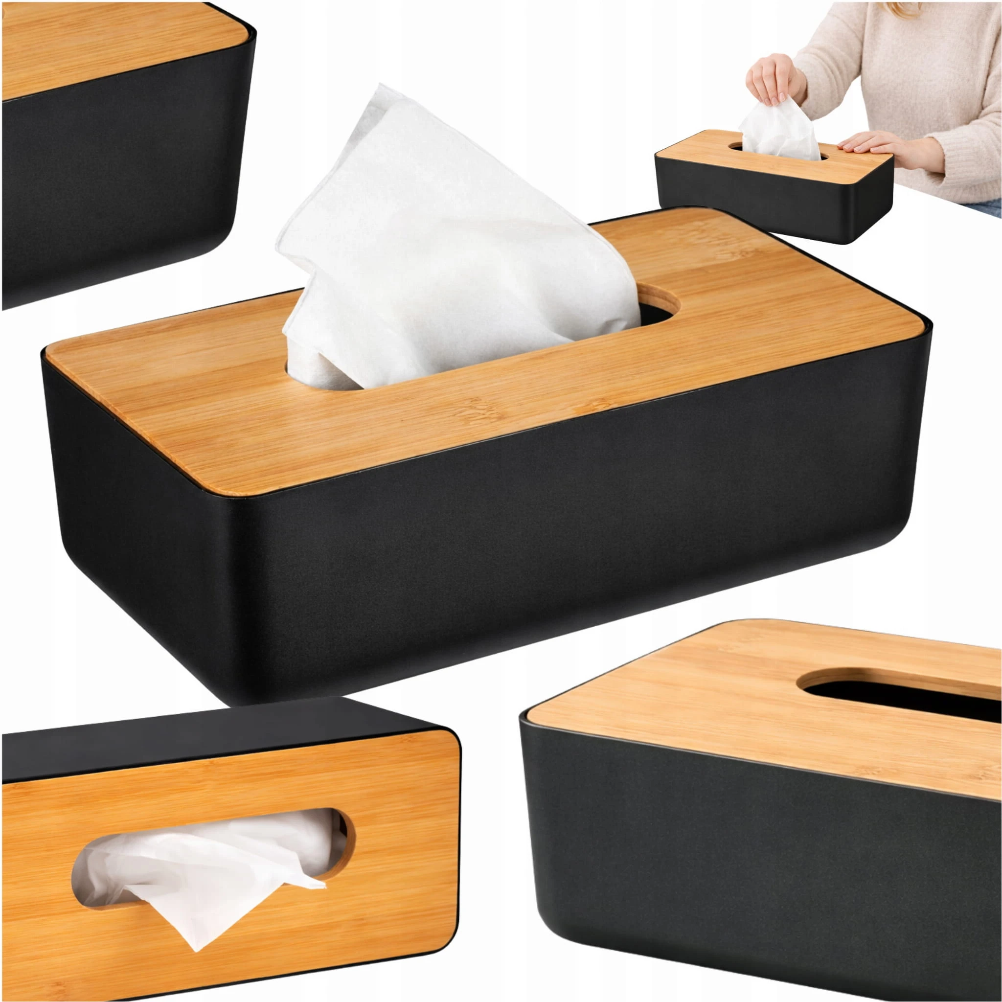 Pojemnik Pudełko Na Chusteczki Chustecznik Czarny Bambus Podajnik Organizer