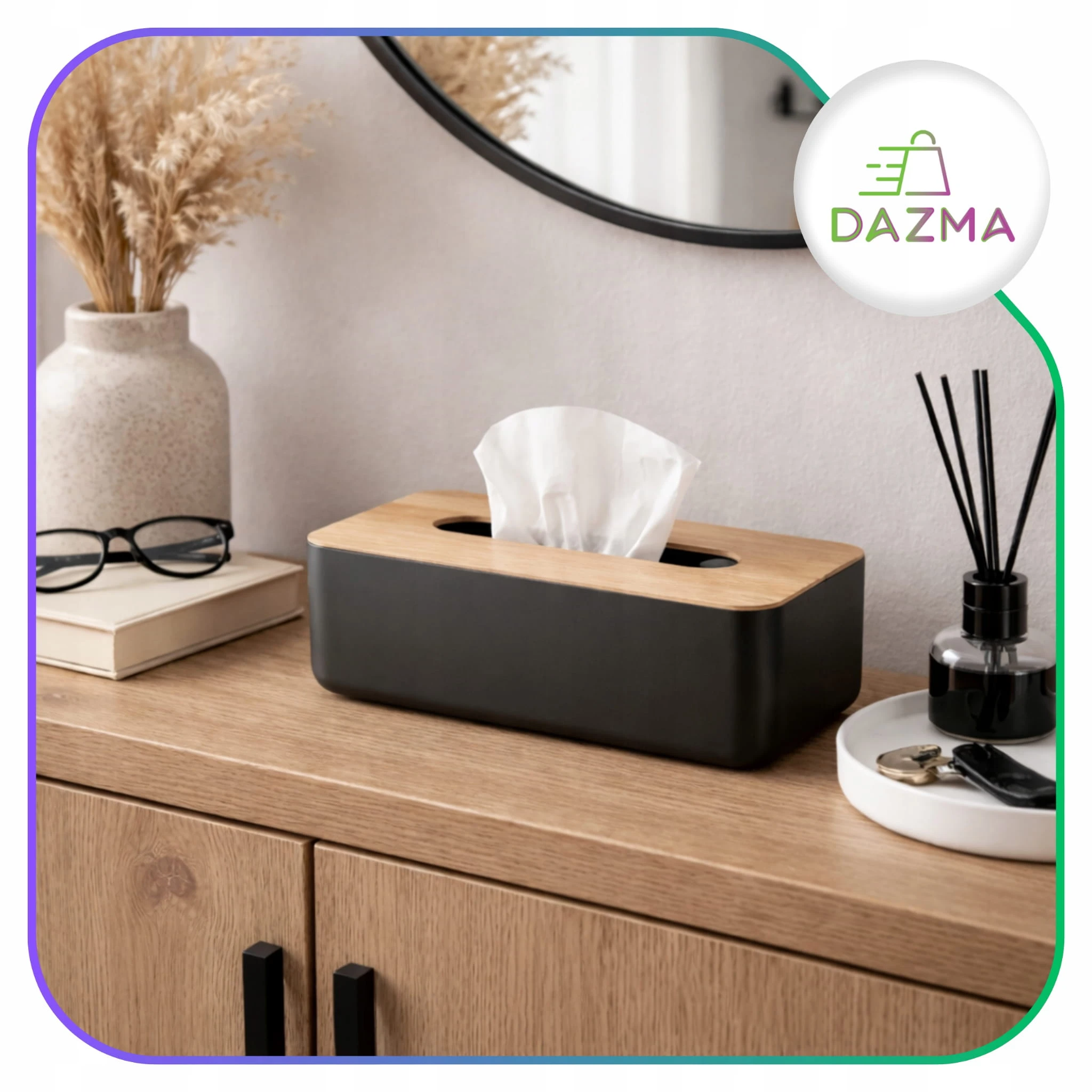 ✔️ W łazience – jako elegancki chustecznik na blacie lub półce.