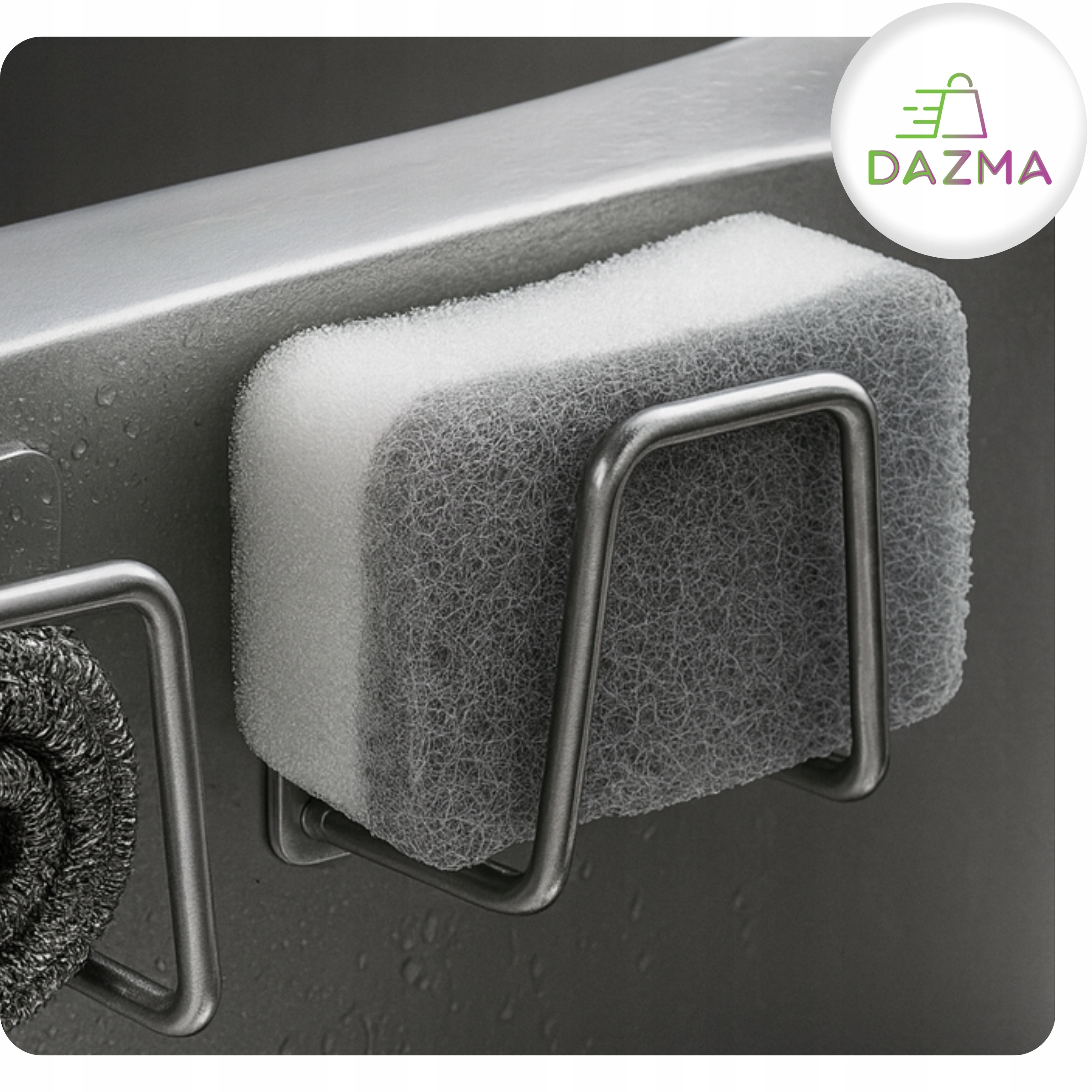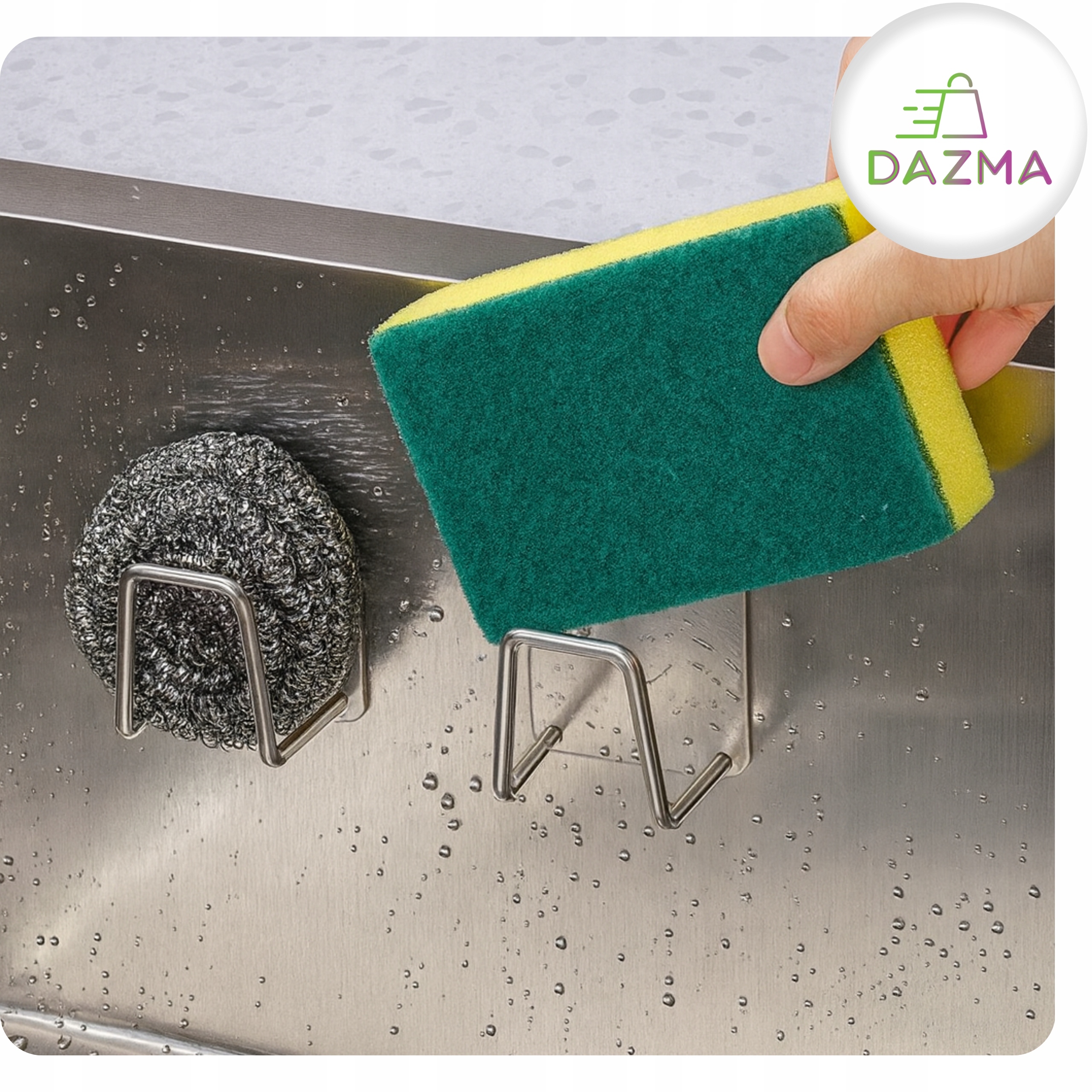 ❇️ Praktyczny uchwyt kuchenny – Organizer na gąbkę z mocną taśmą 3M