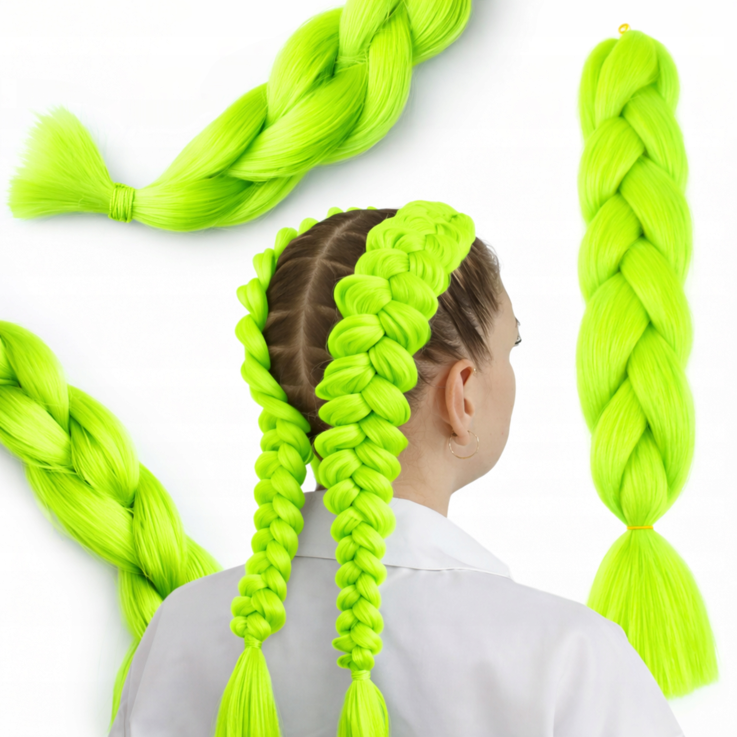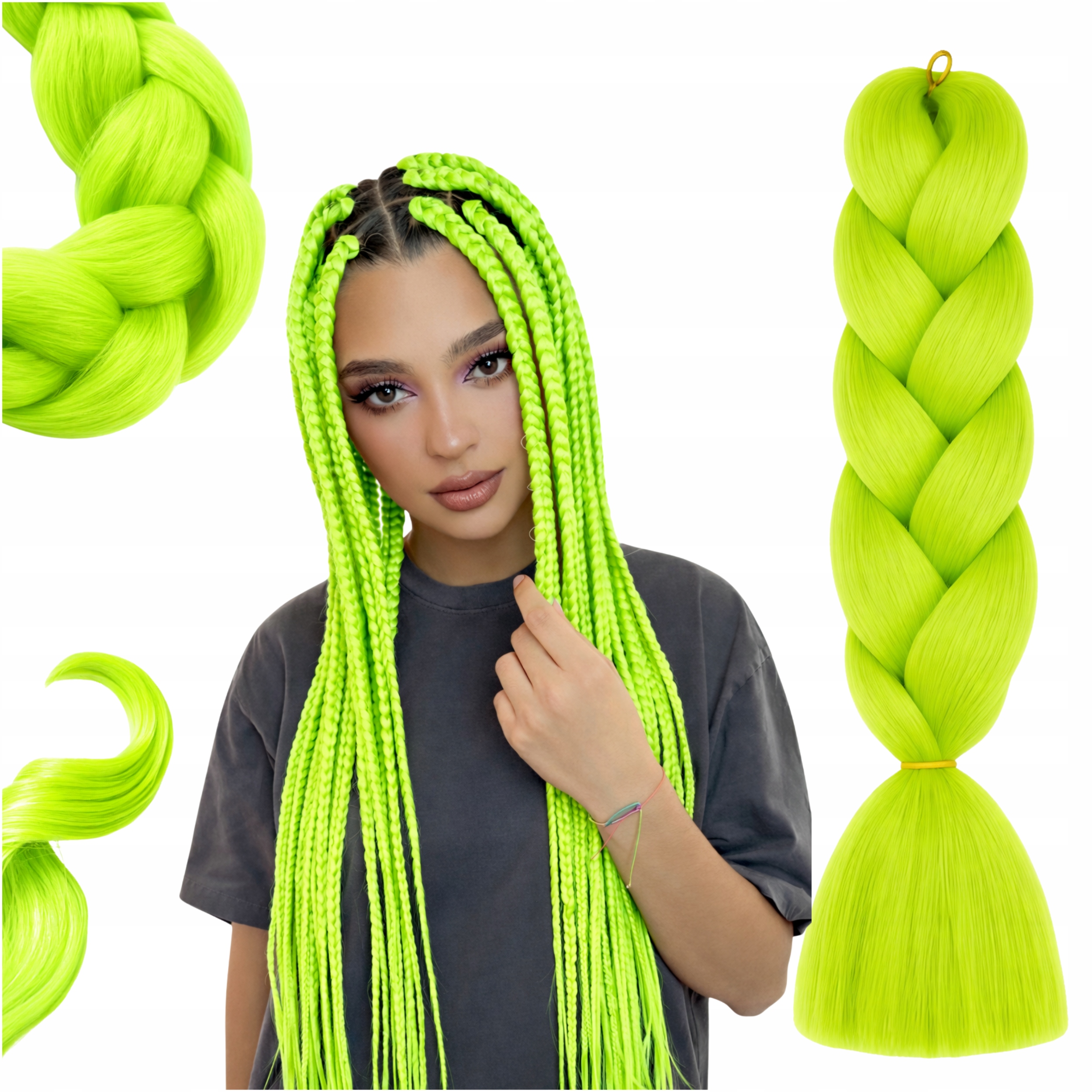 ❇️ Zielone włosy syntetyczne do warkoczyków – Doczepy 120/130 cm